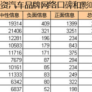 十大外资汽车品牌网络口碑排名:大众负面信息居首