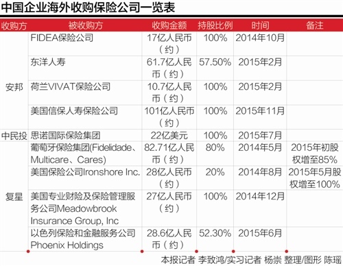 在此之前,安邦保险已将3家海外保险公司收入囊中。2014年10月,安邦保险收购了比利时FIDEA保险公司100%股权;2015年2月,安邦保险又分别收购了荷兰VIVAT保险公司100%股权和韩国东洋人寿57.5%股权。