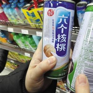 不少核桃乳都在打“补脑益智”概念。新京报记者 郭铁 摄“经常用脑 多喝六个核桃”,自今年9月新广告法颁布后,河北养元智汇饮品股份有限公司的“六个核桃”就频繁遭到质疑。