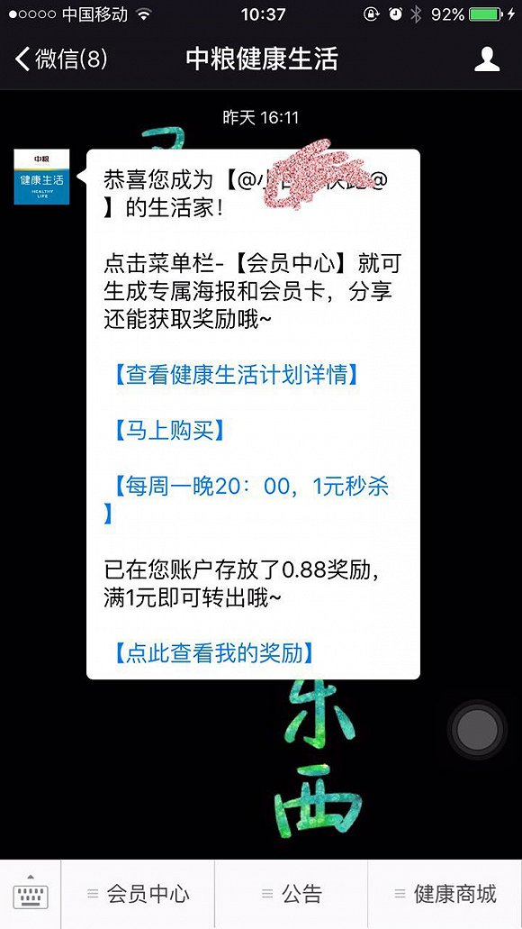 2月17日,一则“中粮购物新模式,淘宝要哭了”的微信商城宣传语在朋友圈流传,因为宣传语中“加入世界500强,不用投资一分钱,中粮就是这么任性,以后买米、油、酱、醋等生活用品自己都可以享受利润分配了”等涉及返利这类比较特殊的词语,而让中粮健康生活的微信公号引发了不少关注。