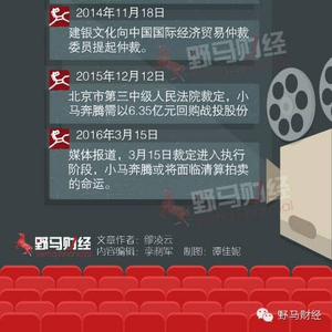 “中国国际经济贸易仲裁委员会裁决就是终审,不存在上诉,3月15日就会进入执行阶段,小马奔腾很可能将面临清算拍卖的命运,建银文化会拿走小马奔腾的全部家当。”一位不愿透露姓名的小马奔腾股东对野马财经表示。