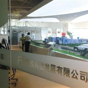 一位老人在业务员的带领下,从银河SOHO17层到三层参观巴铁公司的沙盘。四五百平方米的公司,一个大型沙盘占去大部分区域。沙盘上有巴铁的模拟站台。