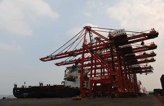 货轮在日照港矿石码头装载铁矿石。 本文图片均为 东方IC 资料图