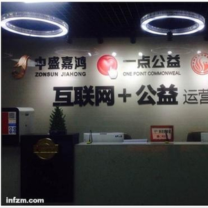 大厅中挂置着一点公益宣传口号“ 爱心从一点汇聚,公益从你我做起”。(高佳/图)