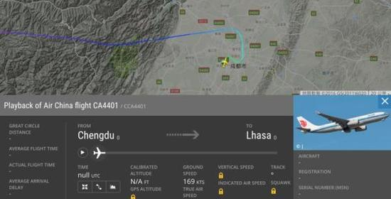 国航CA4401的正常飞行轨迹(据飞行数据网站Flightradar24)。