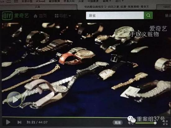 ▲于铁义家中查出的世界名表和珠宝首饰。 《四风之害》专题片截图