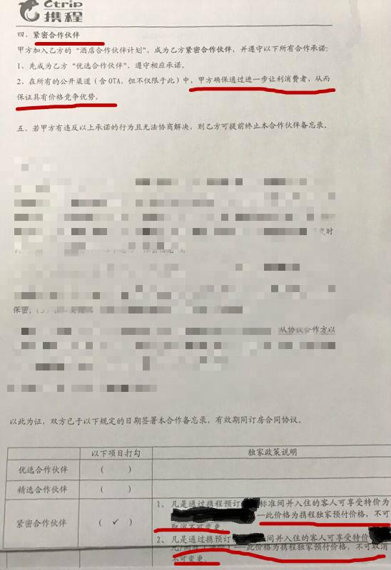 “打个比方,酒店和携程签订特牌合作,那么携程就会将酒店的订单量从原来的20间更改到30间。但是要求就是在携程售卖的酒店绝不能在其他平台上售卖,其实说白了就是垄断。但是这些携程会要求口头承诺不会写在协议里。”张先生说。