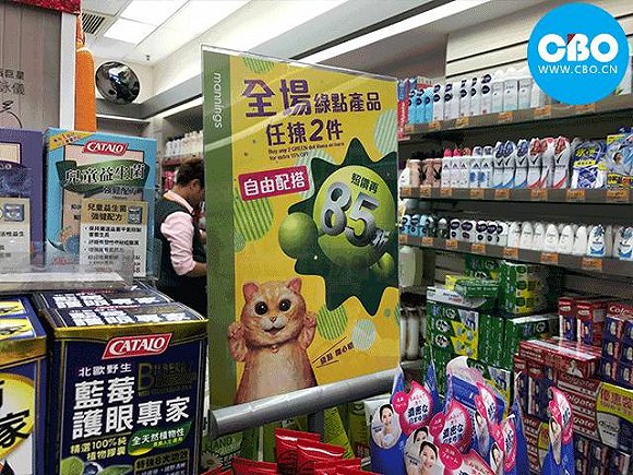 有点意思的是,万宁中有部分产品被标记为绿点商品,任意购买两件就可以打85折,这种促销模式也出现在屈臣氏中,折扣商品则被称为红点商品。而且众所周知,屈臣氏的整体风格是以绿色为主,万宁则是以橙色为主,这种颜色相对的竞争你说是不是故意的呢?