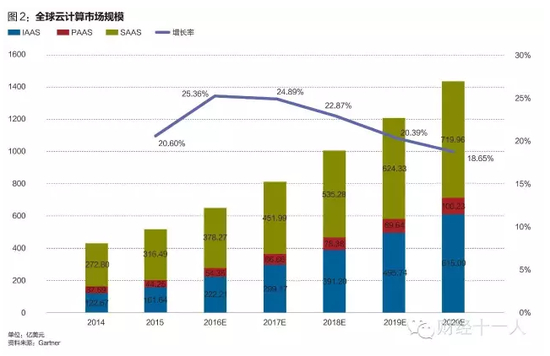 市场研究公司Gartner报告称,全球公共云服务市场规模今年有望达到2040亿美元,每年的增长率接近20%。另一家研究公司Market Research的预测数据显示,2020年全球云服务市场规模将超过2700亿美元。