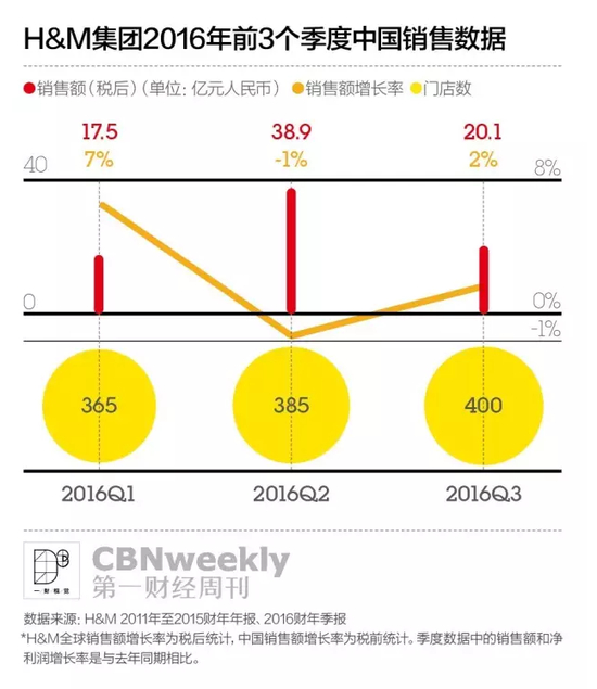 Karl-Johan Persson到来之前的3个财季,中国市场提交的财务数字都不够好看:2016年第一季度,H&M集团中国市场的销售额只同比增长了7%,这个数字在2015年之前都是20%以上,高峰期曾达到50%;到了第二季度,H&M的中国销售总额甚至下滑了1%,这是它进入中国10年来的首次,并且这个成绩还建立在不断有新店开出的基础上。