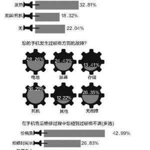 《南方都市报》联合UC收集的问卷数据显示,三星手机中故障比例最多的为死机,比例占39%;其次,37.50%的用户有过电池和屏幕的故障。 江明的三星noteedge就是在使用一年后便“时刻离不开充电器”。但三星维修中心也查不出任何病因,只建议其刷机,可刷机后“虽然稍微快了一些,但电 池还是只能撑半个小时。”
