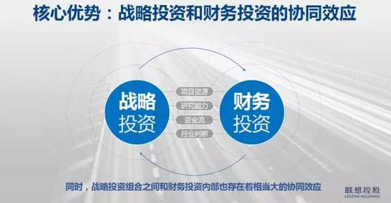 然后大概是在2007年、2008年的时候,我和公司的管理层又萌生了新的想法,我们觉得仅仅做财务投资是不够的,因为我们毕竟是实业出身,希望能通过财务投资获得退出回报的同时,再通过战略投资,在若干个领域形成像联想集团这样的领先企业。那么财务投资和战略投资是什么关系呢?财务投资的覆盖面非常广,他们可以先投进去,适合联想控股的,我们进行联合投资或者独立进行战略投资,由此也逐渐形成了“战略投资+财务投资”双轮驱动的业务模式。