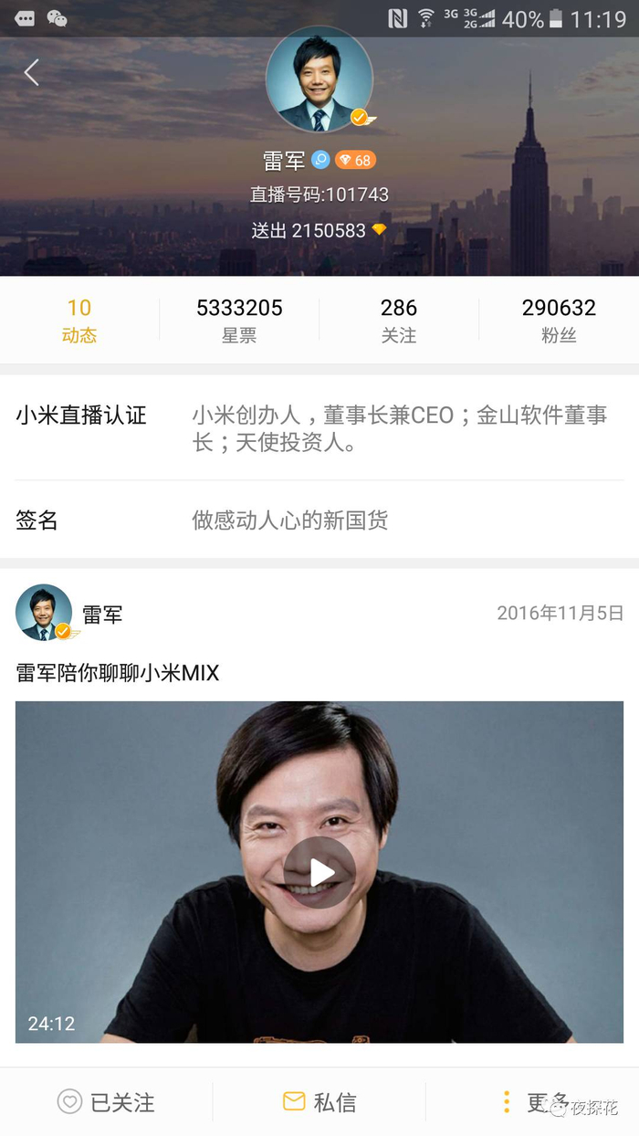 新浪微博认证为“小米公司小米互娱高级副总经理”的博主 @王琦qwang ,早在一年以前已停止更新微博。最后一条微博为:直播各项指标创下纪录。这条微博发布时间为2016年5月25。