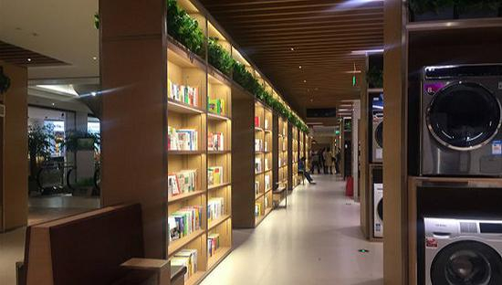 店内每层的中间位置都放置了很多书架,上面摆满了各种各样的热销书籍,以及一整排的绿植。这种设计很自然的对不同的产品区域进行区隔,还给整个卖场赋予了一股浓浓的文艺气息。