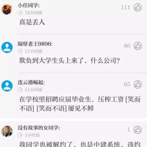 据中青在线报道,在中建四局三公司新员工QQ群发布《新员工通知》后,所有新员工立即在QQ群内被禁言。有学生在接受中青在线采访时表示,当时在校招宣讲会上,中建四局三公司的招聘人员曾承诺试用期内工资将达到4000元/月,转正后达到5400元/月。