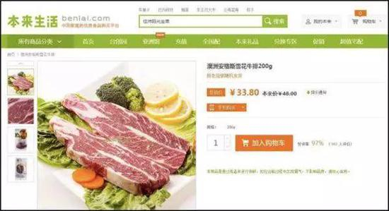一样的图片,一样的牛肉,璞谷塘的单价为225.7元每千克,而另一食品平台的售价则为169元每千克。