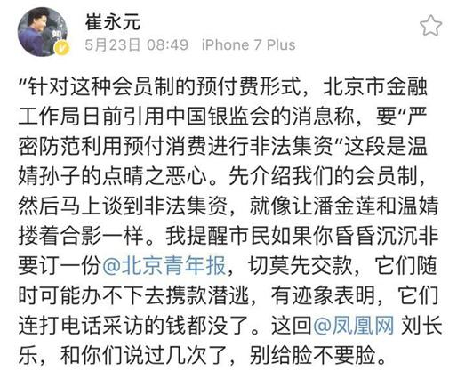 崔永元也在微博上一边怼人一边(算是)回应了这个质疑。