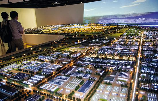 在固安城市规划馆展示的河北固安工业园沙盘,引来众多参观者。图/中国新闻图片网