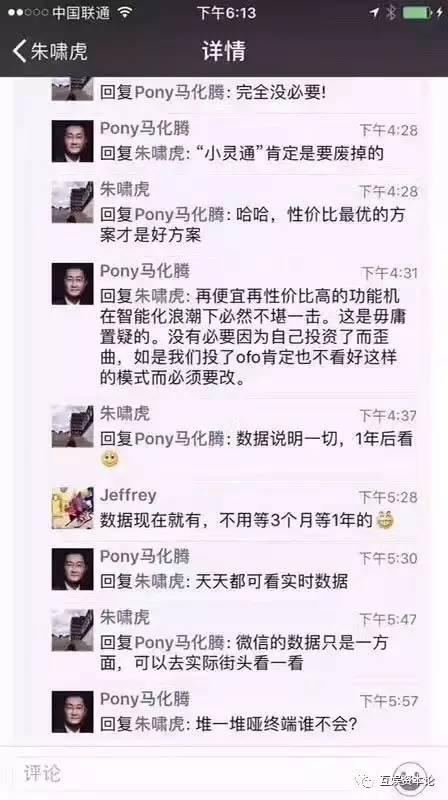 马化腾在朋友圈和一个人互怼,与错过ofo有关?