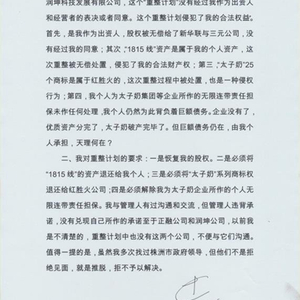 他指出,在获债权人通过的《太子奶重整计划(草案)》中,原本只有三元股份和新华联两家投资人,“管理人在《重整协议》中擅自将投资人主体由两家扩大到三家,增加了株洲润坤科技发展有限公司”。