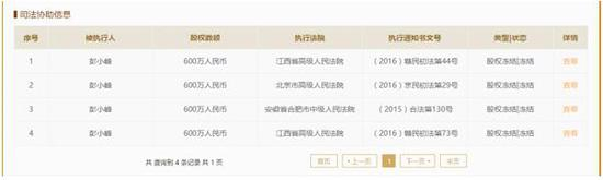 绿能宝平台的备案公司阳光动力电子商务(上海)有限公司的相关信息则显示,司法协助信息一栏显示其法人彭小峰被三地法院冻结2400万资产,至今仍是冻结状态。