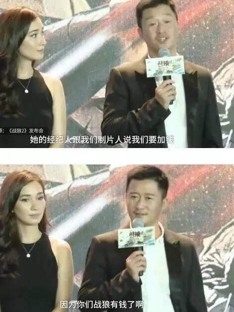 “她的经纪人跟我们的制片人说要加钱,不加钱就不来,她们说因为你们《战狼》剧组有钱,我们要加价。”