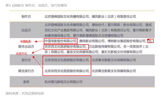 当然,除了北京文化的收益与《战狼2》高度相关外,中国电影也是该片的出品方。