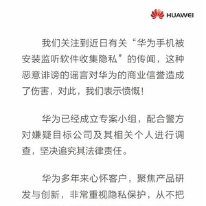 手机被安装监听软件收集隐私?华为怒了:恶意诽谤!