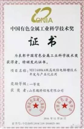 此外,魏桥铝电今年3月还获得了中国有色金属工业科学技术奖一等奖。