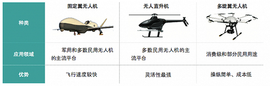 较于小型无人机来说,固定翼无人机载重更大、飞行距离更远、飞行限制更小。固定翼的飞行高度达到数千米,属于低空空域。