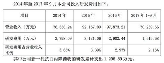 同时,有意思的是,公司所称的累计研发支出1298.89万元新产品,也是“抗白内障”药物。