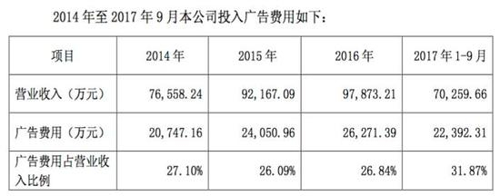 对此,公司在相关澄清函中称,广告费占比较高,是因为产品单一,所以要通过广告投入提高产品知名度。