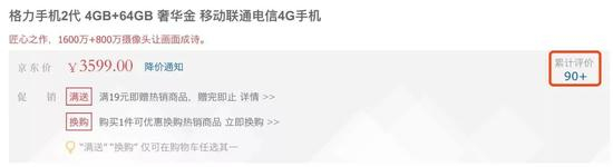 然而京东早已知晓一切,一句‘累计评论90+’掀开了格力手机的底裤。