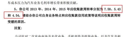 早在2016年,深交所就对比亚迪2015年的年报下发了一封问询函,其中就涉及到比亚迪应收账款周转率变缓的问题。