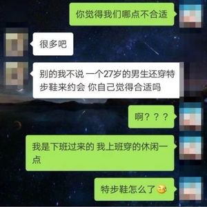 最近,在杭州萧山,一个小伙因为在相亲时穿了一双特步牌运动鞋,遭女方拒绝了。原因是:27岁的男生穿特步鞋约会不合适;自己喜欢精致一点的男生。