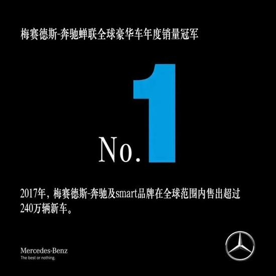 戴姆勒股份公司董事会主席、梅赛德斯-奔驰汽车集团全球总裁蔡澈表示: “去年, 梅赛德斯-奔驰及 smart 品牌在全球范围内售出超过 240 万辆新车,连续第 7 年刷新销量纪录,2017 年我们再度成为全球最畅销豪华品牌。 2018 年,我们将立足‘瞰思未来(C∙A∙S∙E) ’ 战略, 继续进行系统化的探索与推进。”