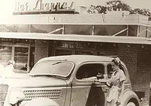 1927年,J. Willard Marriott和Alice Sheets Marriott 夫妇在华盛顿创立了一间只能坐九个人的啤酒小店,后来又在菜单里添加了辛辣风味的墨西哥菜品,就把店名改成了Hot Shoppe,并扩张为连锁店。1936年,他们开始在路边为司机提供路边停车的车上餐饮服务car-side service。