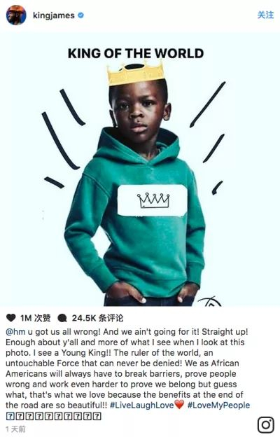 篮球巨星詹姆斯也在自己的Instagram上为照片中的男童加上一顶皇冠并写道:“在这张照片里我看到的是一位年轻的王。”