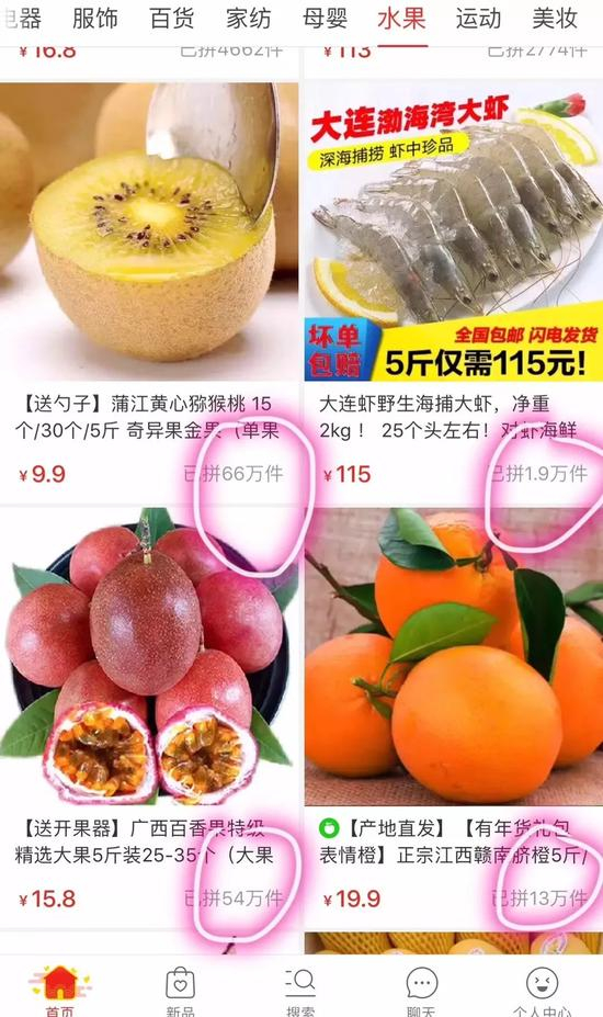 同样是抢年货,拼多多用一种更高效的链接方式把更追求性价比的用户聚集到一起。做过快消生意的都该知道,要薄利多销,就要主打大众低端市场。头条快手拼多多的用户都是真正的利基市场,是之前被阿里视为大盘的天猫没能服务好的群体。拼多多把天猫京东看不上的地摊货以人传人的方式搬上网了,拼多多的用户是农村淘宝想要拓展的用户,是支付宝一直没能覆盖到的但是随着智能手机普及而最终连网的新网民。