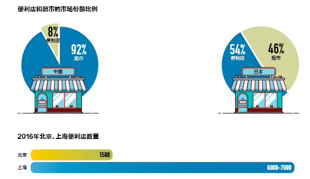 与北京不同,上海、广州更多的是街道文化。街道文化是什么?以便利店发展最为强盛的日本为例,行走在日本城市的街道上,往往会发现二楼、三楼多是办公或居民住宅,而一楼则是自家的店铺。在这种环境中,市民的整个生活都可以在街道、或者街区里完成,而这样的文化环境,才是便利店发展的基础。