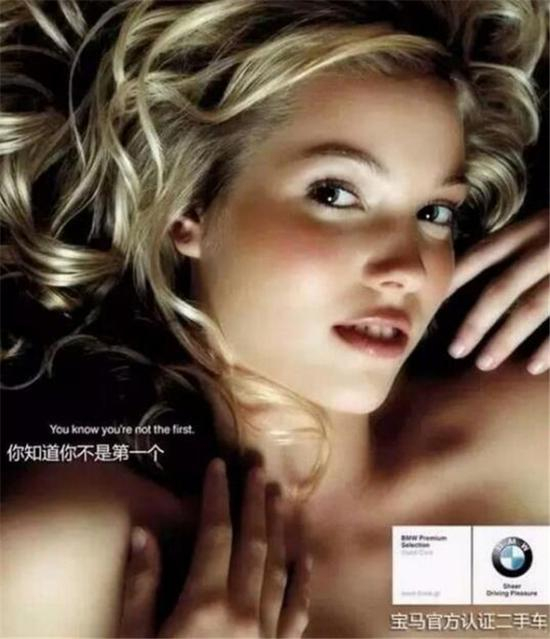其实在诸多豪华品牌中,同样令男性浮想联翩、令女性感到不适的广告有不少,如半年前的奥迪二手车广告就因婚礼上婆婆检查儿媳的内容遭到了大面积的批判,被指责物化、歧视女性;更早时候的宝马官方认证二手车的海报——疑似裸体的美女配上“你知道你不是第一个”的文案,同样引起了巨大的争议。