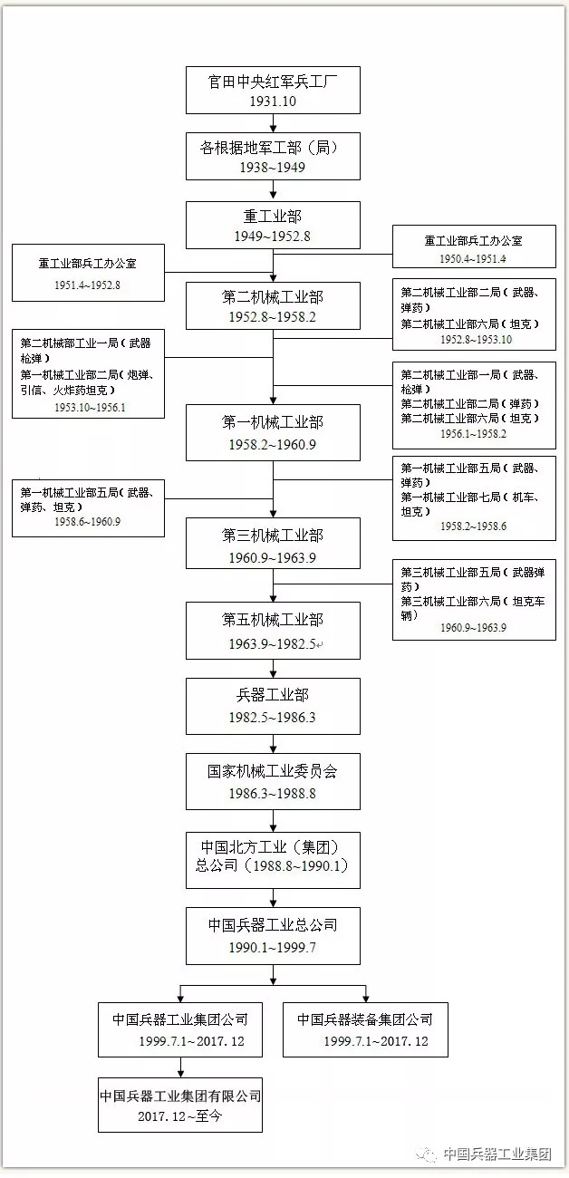 根据党中央、国务院关于全民所有制企业基本完成公司制改制的重大决定和国务院国资委有关工作部署,经国务院国资委批复同意,中国兵器工业集团公司进行了公司制改制,企业类型由全民所有制企业变更为国有独资公司,并于2017年12月4日在北京市工商行政管理局办理了工商变更登记手续,中英文名称“中国兵器工业集团公司”和“China North Industries Group Corporation”分别变更为“中国兵器工业集团有限公司”和“China North Industries Group Corporation Limited”。对外中文名称“中国北方工业集团公司”变更为“中国北方工业集团有限公司”。企业注册资本由253.5991亿元变更为383亿元。改制及更名后,原有业务、资产、资质、债权、债务均由改制后公司承继,出资人、公司住所、法定代表人、经营范围均不变。