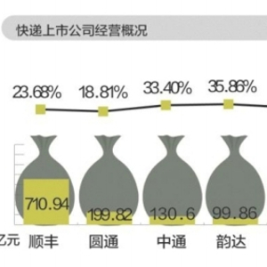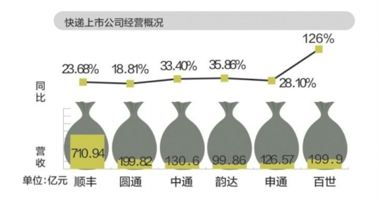 今年初,国家邮政局长马军胜透露,过去五年邮政业业务总量年均增速达到37%,业务收入占GDP比重从0 .36%提高到0 .82%,快递服务业收入4950亿元,同比增长24 .5%。是谁在这将近5000亿的大盘子里赚钱呢?我们从四家A股上市公司的报表中可见端倪。