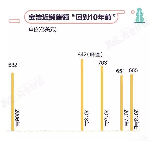 其实从2016开始,宝洁的年销售额基本上保持在650亿美元左右,对比2006年682亿美元的销售额来看,宝洁似乎“一夜回到10年前”。