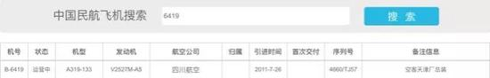 据北京青年报,3U8633航班由一架空客A319客机执行,注册号B-6419,机龄6年10个月。