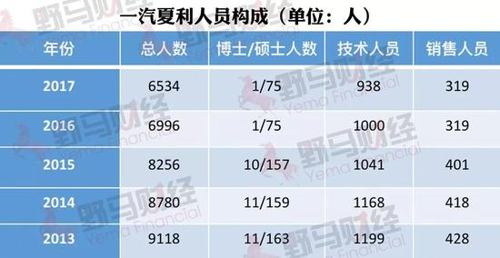 值得注意的是,从2013年开始,公司的总员工数量就开始大幅下降,博士和硕士人数降幅更是达到了50%以上,技术人员和销售人员数量也在不断下滑。依靠着不断萎缩的团队,一汽夏利想在新车研发和推广下功夫,想必还有场硬仗要打。