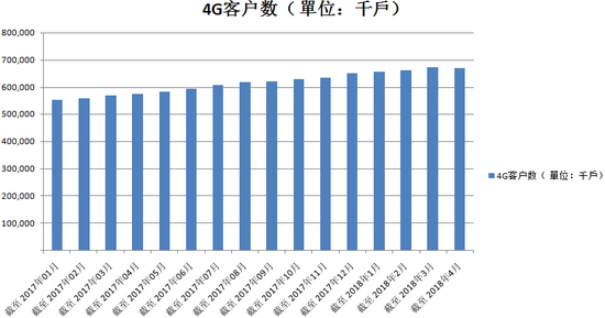 与此同时,同期另外两家运营商的4G用户数都在增长。今年4月,