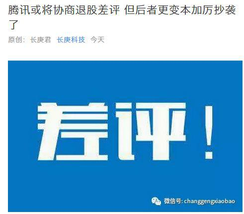 可是世超又在一个叫做“ 长庚科技 ” 的订阅号上看到如下内容:腾讯或将协商退股差评,但后者更变本加利抄袭了。