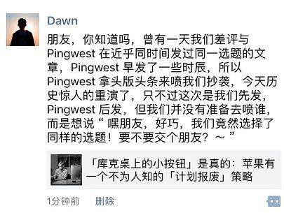 但我们觉得似乎没什么毛病,毕竟优秀的人总会想到一块去,我们觉得这样 OK,然后转他们文章去发了个票圈想破个冰。