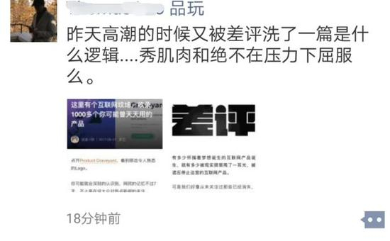 于是,品玩的编辑就指名道姓的在朋友圈发布声明说差评又洗了品玩的稿子了。( 抱歉,没经过您同意就把这个贴出来了,实属无奈 )